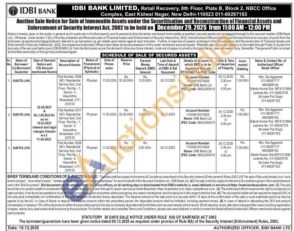 Mrs. Era Aggarwal 011-69297177, 9650088104, Mr.Nitesh Kumar Rai: 9974121899 Mr.Inder Pal Singh: 011-69297163