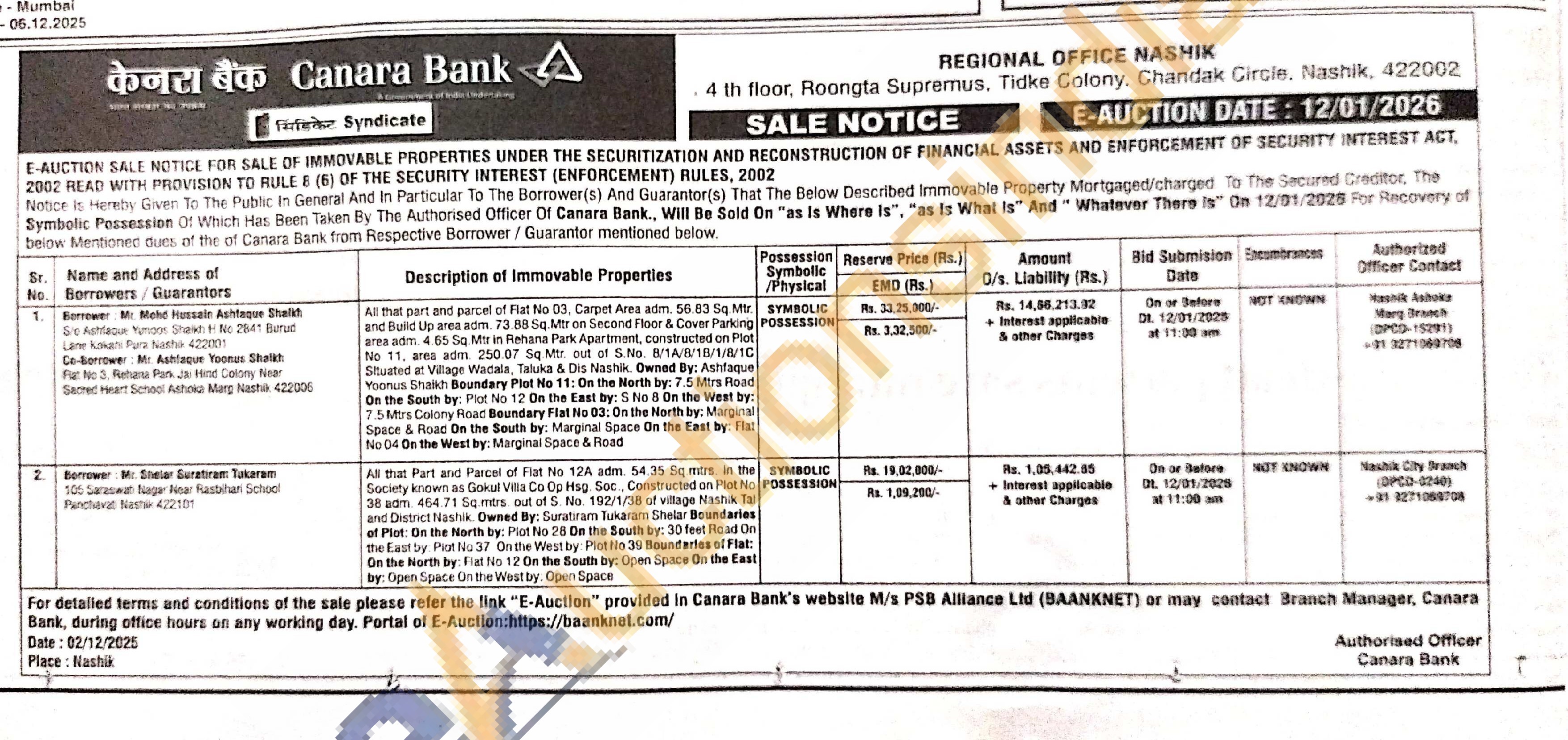 All that Part and Parcel of Flat No 12A adm. 54.35 Sq mtrs in the Society known as Gokul Villa Co Op Hsg. Soc., Constructed on Plot No 38 adm 464.71 Sq mtrs out of 5. No. 192/1/38 of village Nashik Tal and District Nashik Owned By: Suratiram Tukaram Shelal Shelar Boundaries of Plot: On the North by: Plot No 28 On the South by: 30 feet Road On the East by Plot Nu 37 On the West by: Plot No 39 Boundaries of Flat: On the North by Fiat No 12 On the South by: Open Space On the East by: Open Space On the West try. Open Space