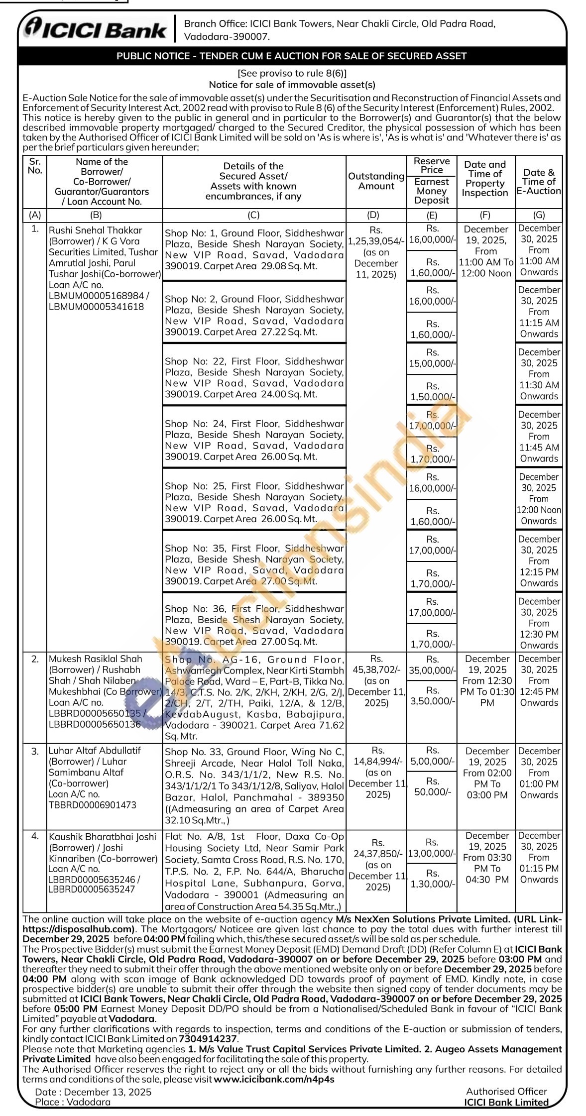 Shop No. 33, Ground Floor, Wing No C, Shreeji Arcade, Near Halol Toll Naka, O.R.S. No. 343/1/1/2, New R.S. No. 343/1/1/2/1 Το 343/1/12/8, Saliyav, Halol Bazar, Halol, Panchmahal 389350 ((Admeasuring an area of Carpet Area 32.10 Sq.Mtr..)