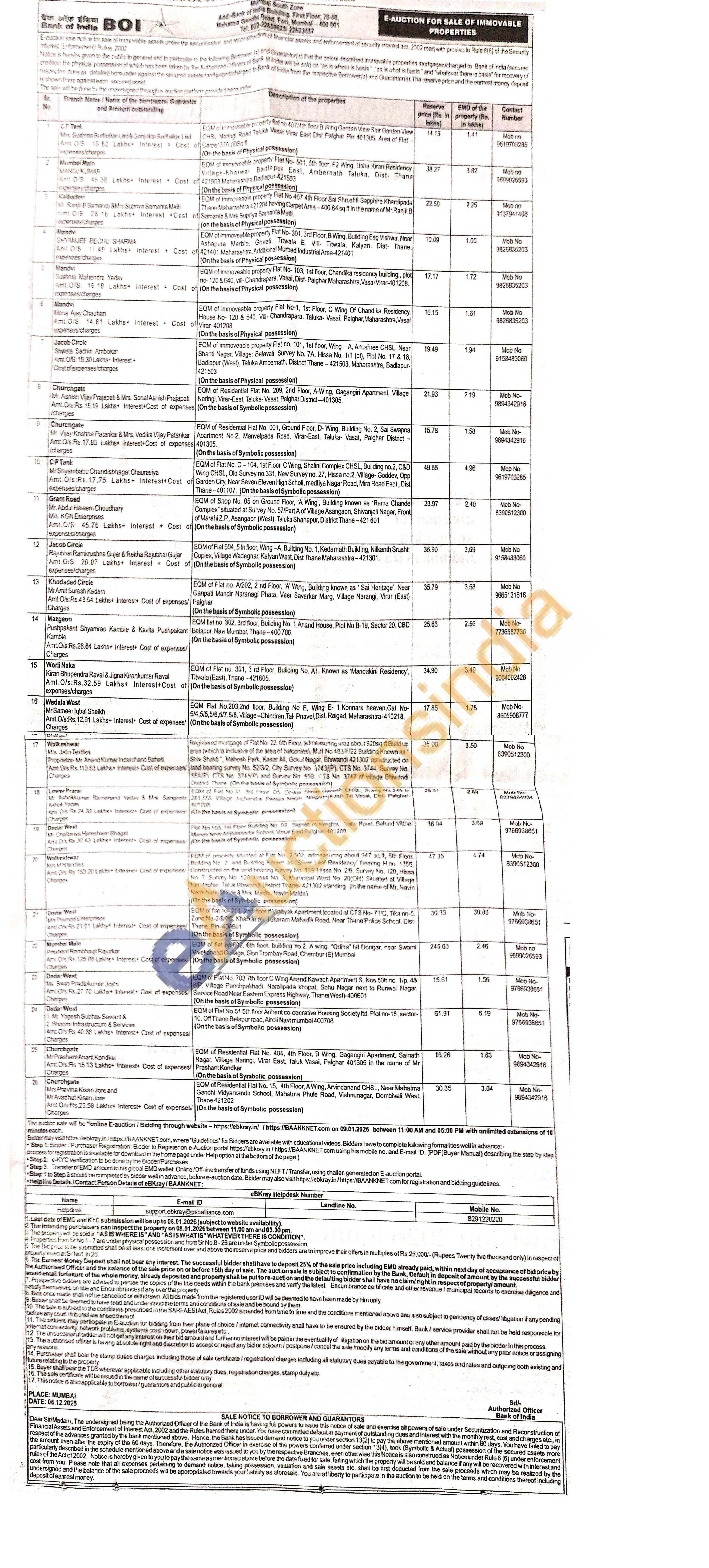 EOM of immovable property flat no 407/4th floor B Wing Garden View Star Garden View CHSL Naringi Road Taluka Vasai Virar East Dist Palghar Pin 401305. Агea of Flat-Carper 370 0050 f (On the basis of Physical possession)