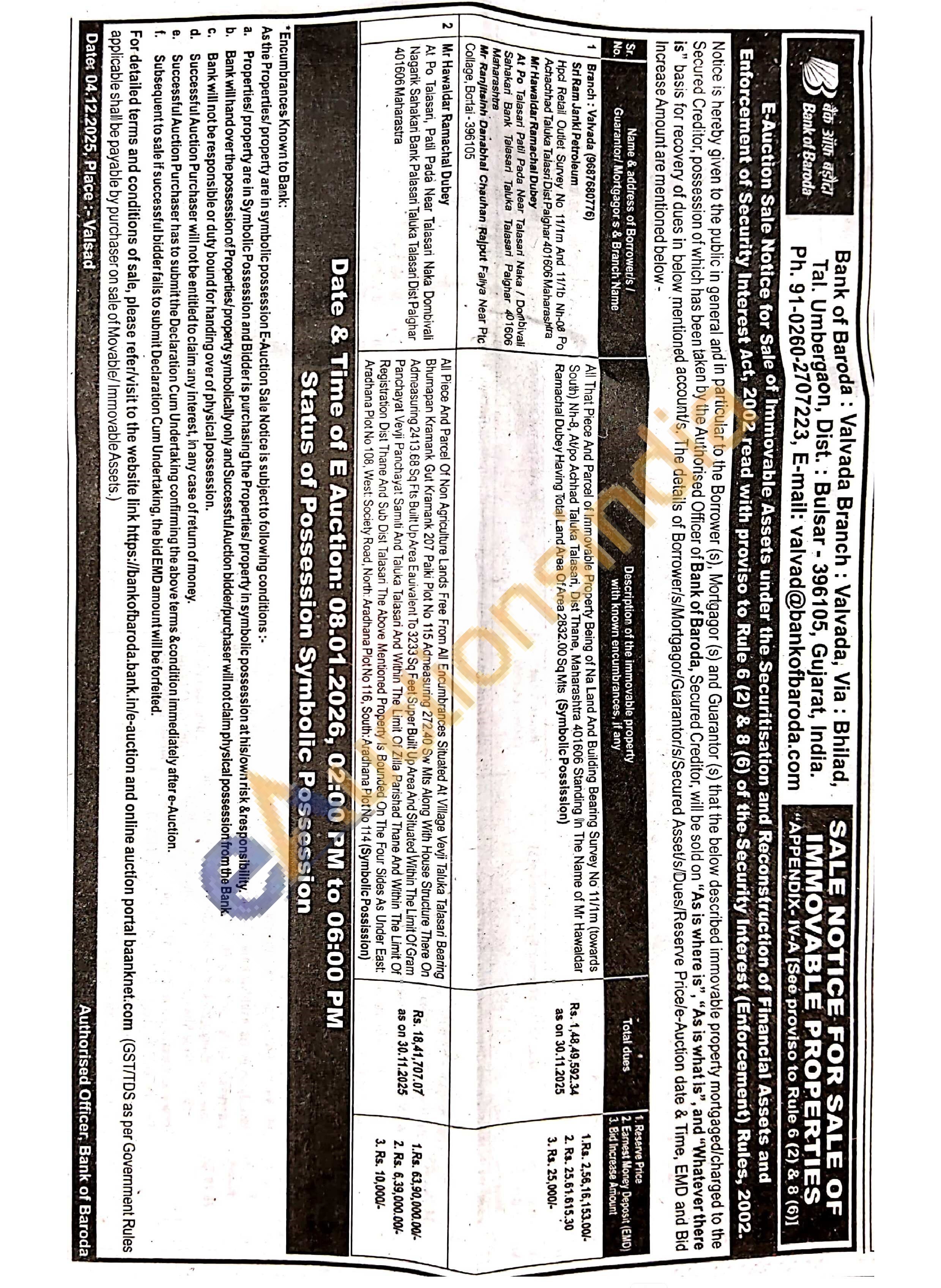 All Piece And Parcel Of Non Agriculture Lands Free From All Encumbrances Situated At Village Vevji Taluka Talasari Bearing Bhumapan Kramank Gut Kramank 207 Paiki Plot No 115 Admeasuring 272.40 Sw Mts Along With House Structure There On Admeasuring 2413.68 Sq Fts Built Up Area Eauivalent To 3233 Sq Feet Super Built Up Area And Situated Within The Limit Of Gram Panchayat Vevji Panchayat Samiti And Taluka Talasari And Within The Limit Of Zilla Parishad Thane And Within The Limit Of Registration Dist Thane And Sub Dist Talasari The Above Mentioned Property Is Bounded On The Four Sides As Under East: Aradhana Plot No 108, West. Society Road, North: Aradhana Plot No 116, South: Aradhana Plot No 114 (Symbolic Possission)