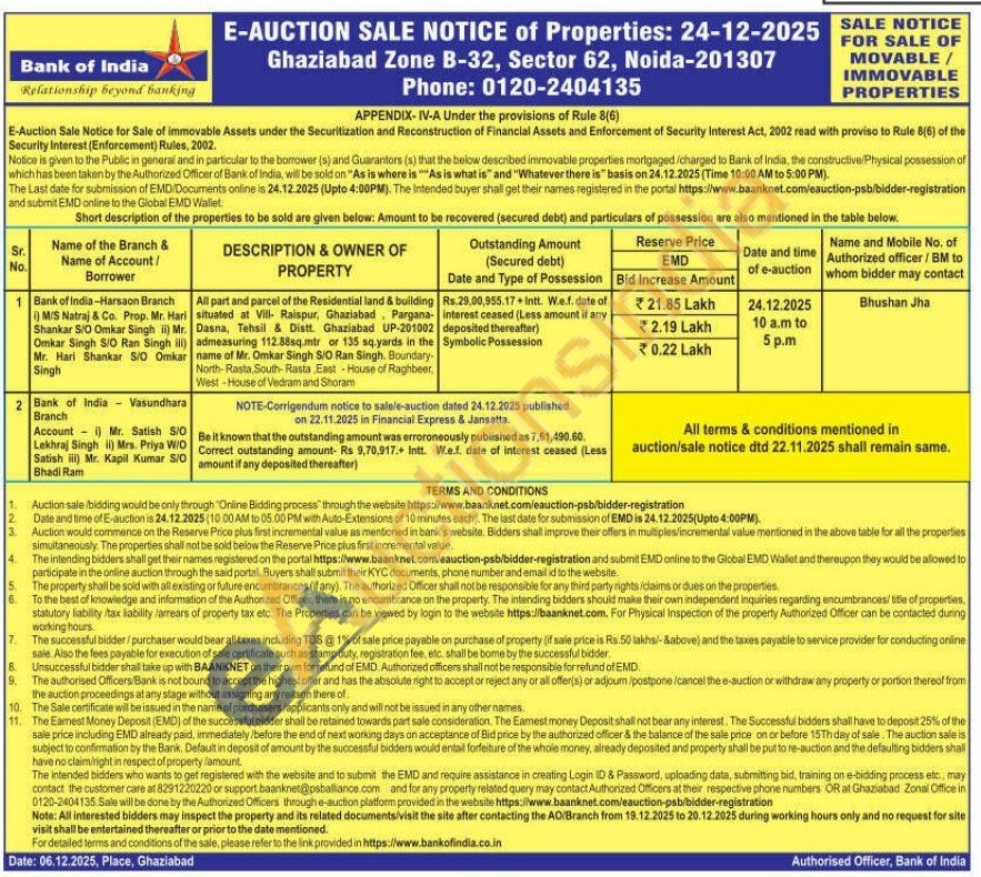 All part and parcel of the Residential land & building situated at Vill- Raispur, Ghaziabad Pargana Dasna, Tehsil & Distt. Ghaziabad UP-201002 admeasuring 112.88sq.mtr or 135 sq.yards in the name of Mr. Omkar Singh S/O Ran Singh. Boundary-North-Rasta, South-Rasta East House of Raghbeer West-House of Vedram and Shoram