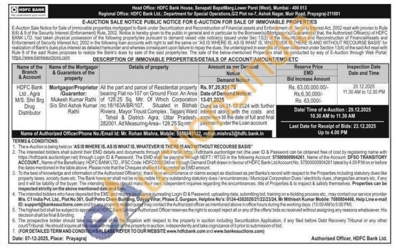 All the part and parcel of Residential property no. 18/163A/BR/107, Situated in Bibhab Riviera, Mayor Troust Complex, Tajganj Ward Tehsil & District Agra, Uttar Pradesh 282001. Ad Measuring Area-128.25 Sq mtr bearing Flat no-107 on Ground Floor, An of 128.25 Sq Mtr. Of Which Corporation