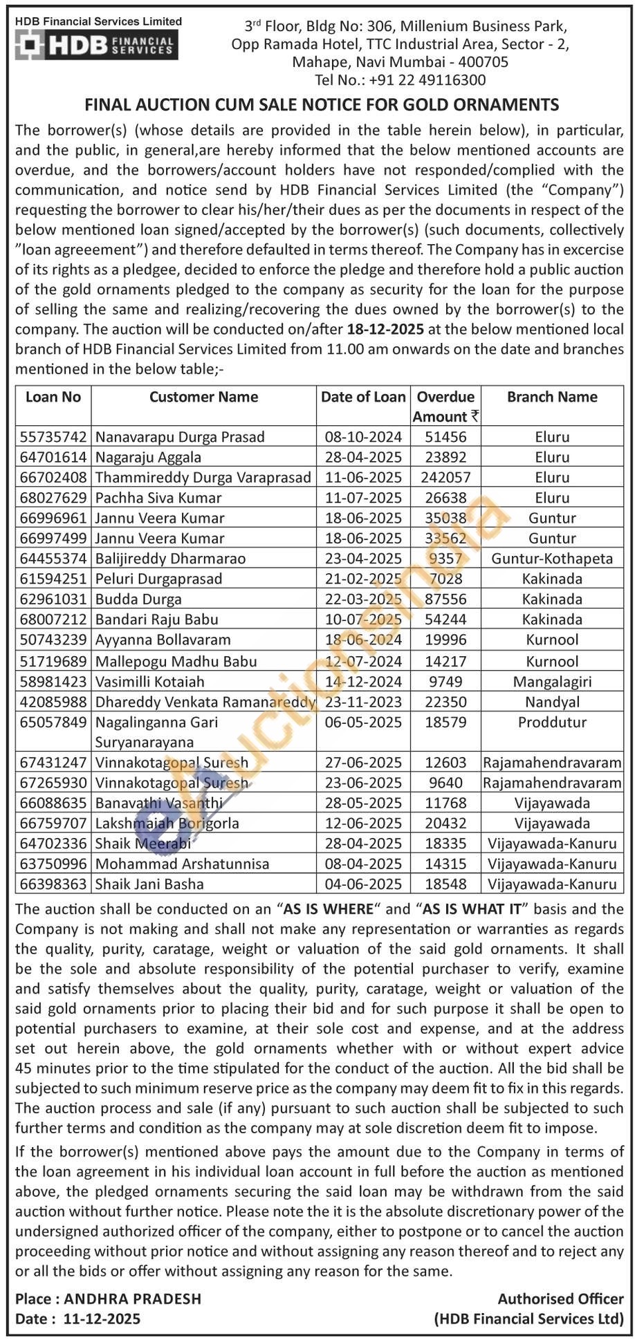 HDB Financial Services Limited Gold Auctions Auction in Navi Mumbai