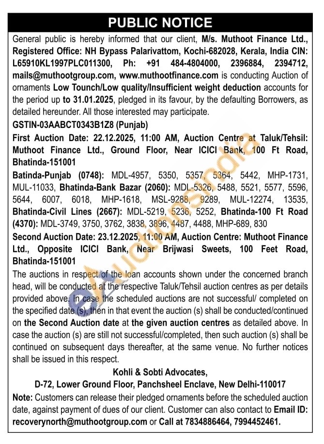 Muthoot Finance Ltd Gold Auctions Auction in New Delhi