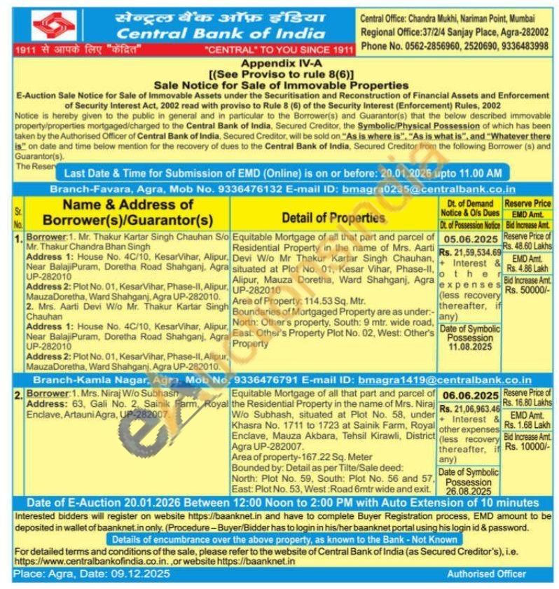 Equitable Mortgage of all that part and parcel of Residential Property in the name of Mrs. Aarti Devi W/o Mr Thakur Kartar Singh Chauhan, situated at Plot No. 01, Kesar Vihar, Phase-ll, UP-282010 Alipur, Mauza Doretha, Ward Shahganj, Agra
