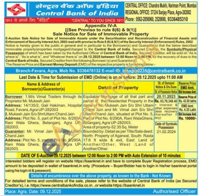 Equitable Mortgage of all that part and parcel of the Residential Property in the name of Mr. Mukesh Jain S/o Shri Uttam Chand Jain and Mr. Vimal Jain S/o Shri Uttam Chand Jain, situated at Plot No. 5, Part of Plot No. 6/290A, Rani WalaGhera, Belanganj, Agra UP-282003