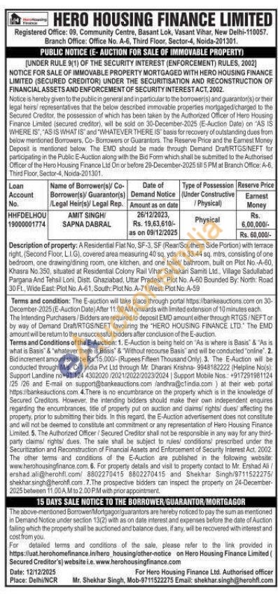 Description of property: A Residential Flat No, SF-3. SF (Rear/Soulhem Side Portion) with terrace right, (Second Floor, L.I.G), covered area measuring 40 sq, yds, le 33.44 sq. mtrs, consisting of one bedroom, one drawing/dining room, one kitchen, and one toilet/ bathroom, built on Plot No-A-60, Khasra No 350, situated at Residential Colony Rail Vihar Sahakari Samiti Ltd., Vilage Sadullabad Pargana And Tehsil Loni, Distt. Ghaziabad, Uttar Pradesh Plot No A-60 Bounded By: North: Road 30 FL, Wide East: Plot No. A-61, South: Plot No. A-71 West: Plot No. A-59