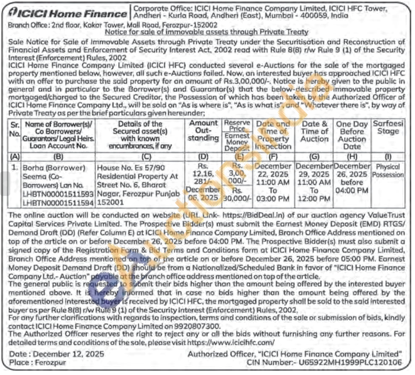 House No. Es 57/90 Residential Property At Street No. 6, Bharat Nagar, Ferozpur Punjab 152001
