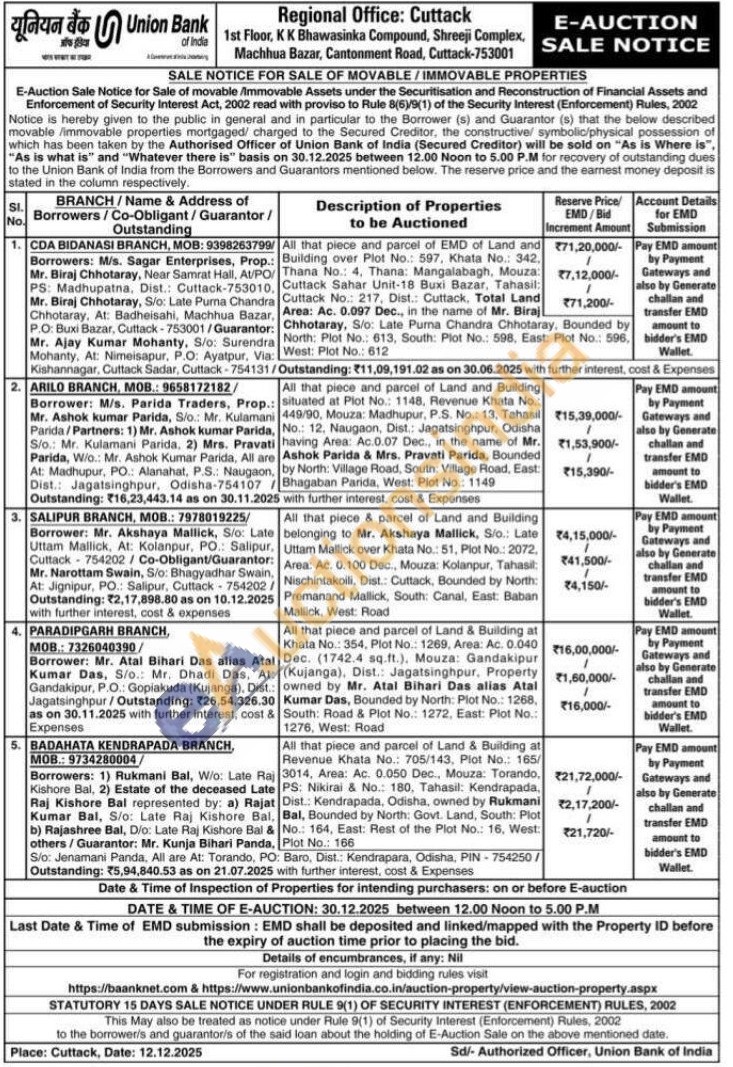 All that piece and parcel of EMD of Land and Building over Plot No.: 597. Khata No.: 342. Thana No.: 4, Thana: Mangalabagh, Mouza: Cuttack Sahar Unit-18 Buxi Bazar, Tahasil Cuttack No.: 217, Dist.: Cuttack, Total Land Area: Ac. 0.097 Dec., in the name of Mr. Biraj Chhotaray, S/o: Late Purna Chandra Chhotaray, Bounded by North: Plot No.: 613, South: Plot No.: 598, East: Plot No.: 596. West: Plot No.: 612