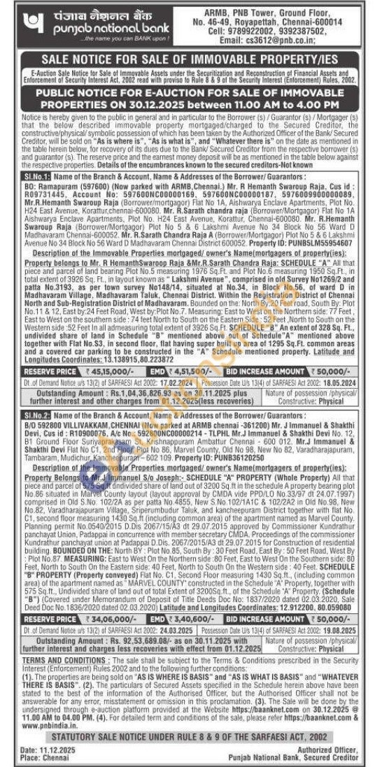 2) All that piece and parcel of 575 Sq.ft undivided share of land out of 3200 Sq ft in the schedule A property bearing plot No 86 situated in Marvel County layout (layout approval by CMDA vide PPD/LO No 33/97 dt 24.07.1997) comprised in Old S.No. 102/2A as per patta No 4855, New S.No. 102/1A1C & 102/2A2 in Old No.98, New No.82, Varadharajapuram Village, Sriperumbudur Taluk, and kancheepuram District together with flat No. C1, second floor measuring 1430 Sq.ft (including common area) of the apartment named as Marvel County. Planning permit No.0540/2015 D.Dis 2067/15/A3 dt 29.07.2015 approved by Commissioner Kundrathur panchayat Union, Padappai in concurrence with member secretary CMDA, Proceedings of the commissioner Kundrathur panchayat union at Padappai D. Dis. 2067/2015/A3 d 29.07.2015 for Construction of residential building BOUNDED ON THE: North BY: Plot No.85, South By: 30 Feet Road, East By: 50 Feet Road, West By Plot No. 87. MEASURING: East to West On the Northem side 80 Feet, East to Wirst On the Southern side: 80 Feet, North to South On the Eastern side: 40 Feet, North to South On the Western side: 40 Feet. SCHEDULE "B" PROPERTY (Property conveyed) Flat No. C1, Second Floor measuring 1430 Sq.ft. (including common area) of the apartment named as MARVEL COUNTY constructed in the Schedule "A" Property, together with 575 Sq. ft. Undivided share of land out of total Extent of 32005 ft, of the Schedule 'A' Property. (Schedule "B") (Covered under Memorandum of Deposit of Title Deeds Doc No. 1837/2020 dated 02.03.2020, Sale Deed Dot No. 1836/2020 dated 02.03.2020) Latitude and Longitudes Coordinates: 12.912200, 80.059080