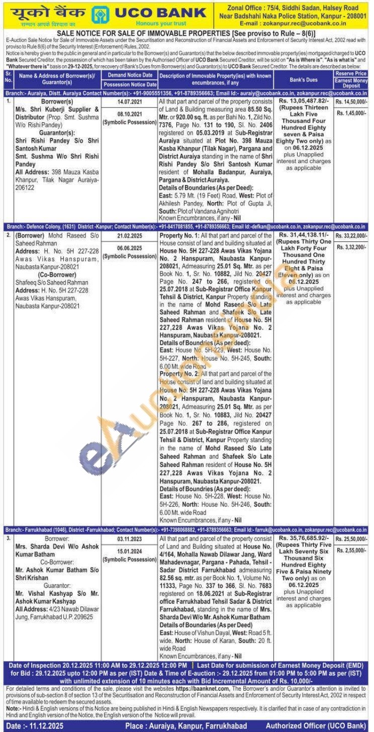 Property No. 1: All that part and parcel of the House consist of land and building situated at House No. 5H 227-228 Awas Vikas Yojana No. 2 Hanspuram, Naubasta Kanpur-208021, Admeasuring 25.01 Sq. Mtr. as per Book No. 1, Sr. No. 10882, Jild No. 20427 Page No. 247 to 266, registered on 25.07.2018 al Sub-Registrar Office Kanpur Tehsil & District, Kanpur Property standing in the name of Mohd Raseed Sio Late Saheed Rahman and Shafeek Sio Lata Saheed Rahman resident of House No. 5H 227,228 Awas Vikas Yojana No. 2 Hanspuram, Naubasta Kanpur-208021.Details of Boundries (As per deed): East: House No. 5H-229. West: House No. 5H-227, North: House No. 5H-245, South: 8.00 Mt. wide Road Property No. 2: All that part and parcel of theHouse consist of land and building situated at House No. 5H 227-228 Awas Vikas Yojana No. 2 Hanspuram, Naubasta Kanpur-208021, Admeasuring 25.01 Sq. Mtr. as per Book No. 1, Sr. No. 10883, Jild No. 20427 Page No. 267 to 286, registered on 25.07.2018 at Sub-Registrar Office Kanpur Tehsil & District, Kanpur Property standing in the name of Mohd Raseed Sio Late Saheed Rahman and Shafeek Sio Late Saheed Rahman resident of House No. 5H 227,228 Awas Vikas Yojana No. 2 Hanspuram, Naubasta Kanpur-208021.