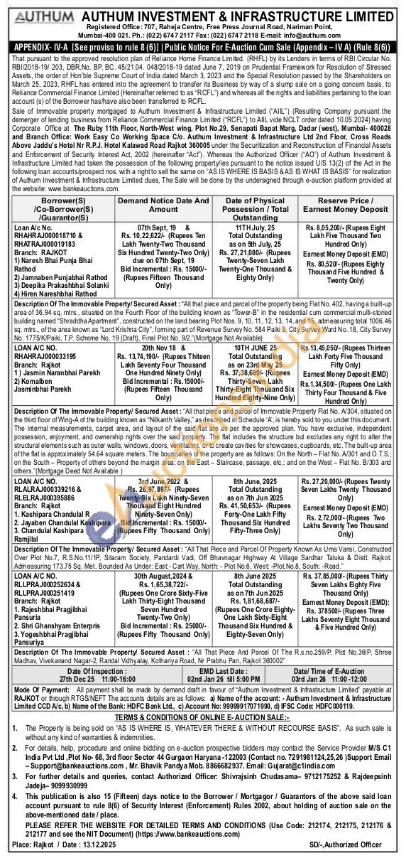 Contact Authorized Officer: Shivrajsinh Chudasama-9712175252 & Rajdeepsinh Jadeja-9099930999