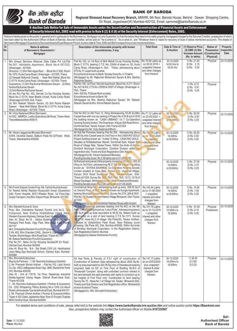 All that Commercial premises bearing Unit No.402 on the 4th Floor, in the building known as "Lotus Pride", Admeasuring area is 630 Sq.ft built up area equivalent to 58.52 Sq. Meters build up constructed on a plot of land bearing C.T.S No. 1311, Survey No.271/6, hissa No.2 of village Vile Parie(W), Taluka-Andheri Situated at Vallabhbhai Patel Road, Near Railway Level Crossing, Vile Parle (W). Dist. Mumbai-400056. Within the limits of Bombay Municipal Corporation, in the Registration District Sub-Registration District: Mumbal