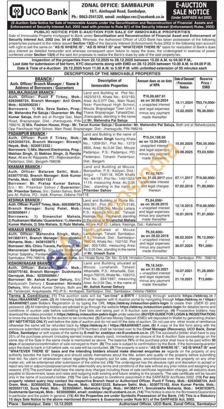 Contact Auth. Officer: Punit F Tirkey, Mob.: 8263088724, Branch Manager: Suraj Patel, Mob.: 9230500641