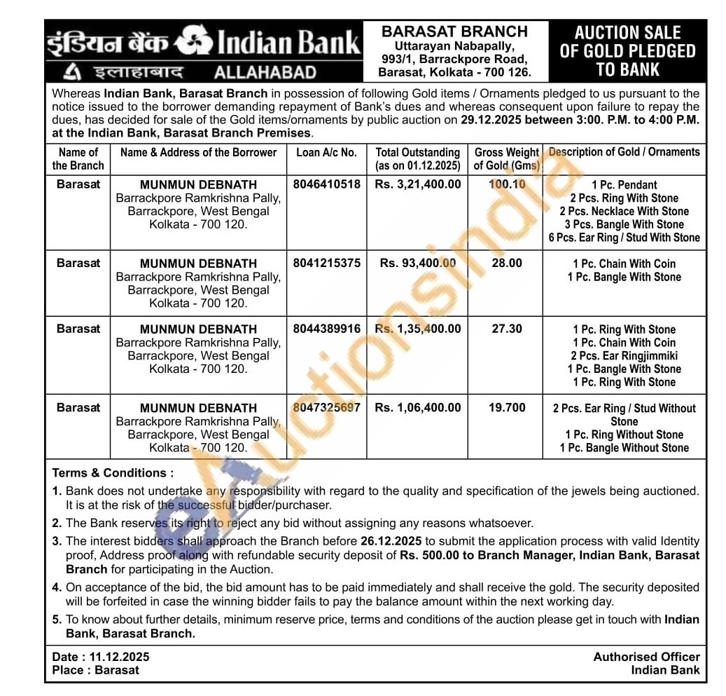 Indian Bank Gold Auctions Auction in Kolkata