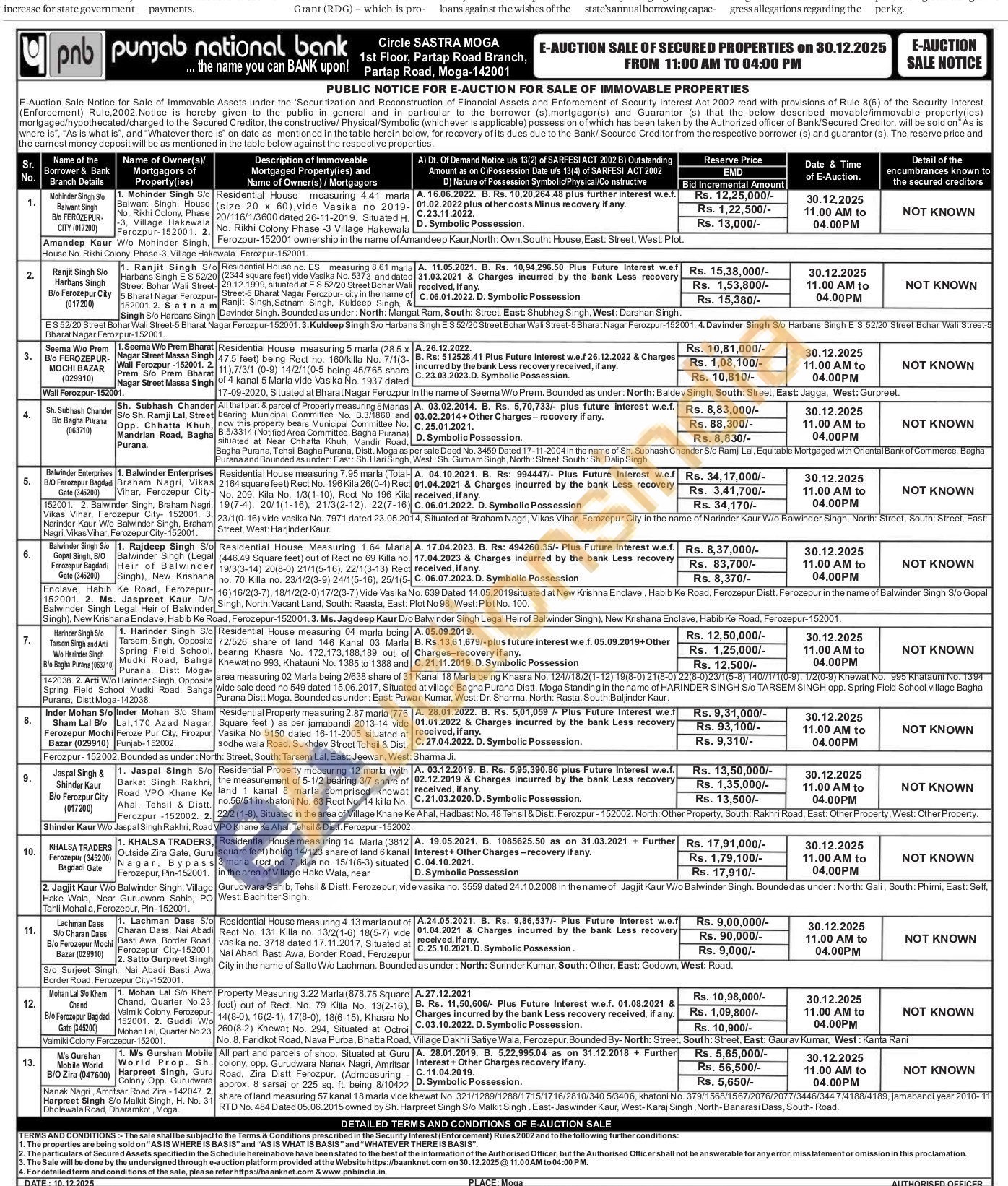 Residential House measuring 5 marla (28.5 x A.26.12.2022. gh 47.5 feet) being Rect no. 160/killa No. 7/1(3. 2. rat 11).7/3/1 (0-9) 14/2/1(0-5 being 45/765 share gh of 4 kanal 5 Marla vide Vasika No. 1937 dated Situated at Bharat Nagar Ferozpur In the name of Seema W/o Prem. Bounded as under