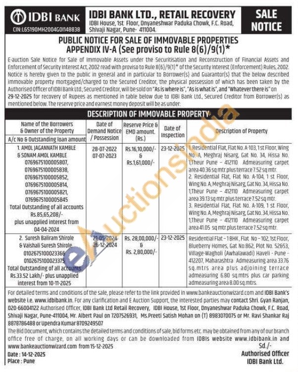 Residential Flat-18HK, Flat No-102, 1st Floor, Blueberry Homes, Gat No.862, Plot No. 52653, Village-Wagholi (Awhalawadi) Haveli - Pune-412207, Maharashtra Admeasuring area 3376 sq.mtrs area plus adjoining terrace admeasuring 6.80 sq.mtrs plus car parking admeasuring area 8.00 sq. mtrs.