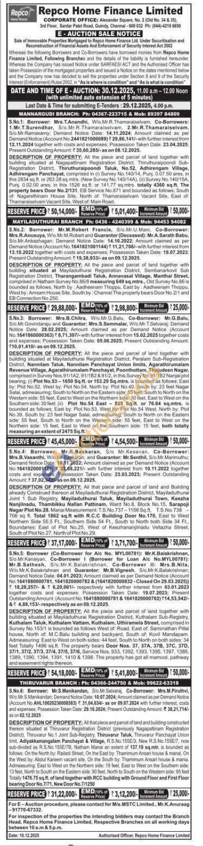 2) All the piece and parcel of land together with building situated at Mayiladuthurai Registration District, Sembanarkovil Sub Registration District, Tharangambadi Taluk, Annavasal Village, Manthai Street, comprised in Natham Survey No. 86/8 measuring 649 sq.mtrs., Old Survey No. 86 is bounded as follows, North by Aadheenam Thoppu, East by: Aadheenam Thoppu, West by: Amsam House Site, South by: Channel The property bears Door No.2/1 and EB Connection No.250.