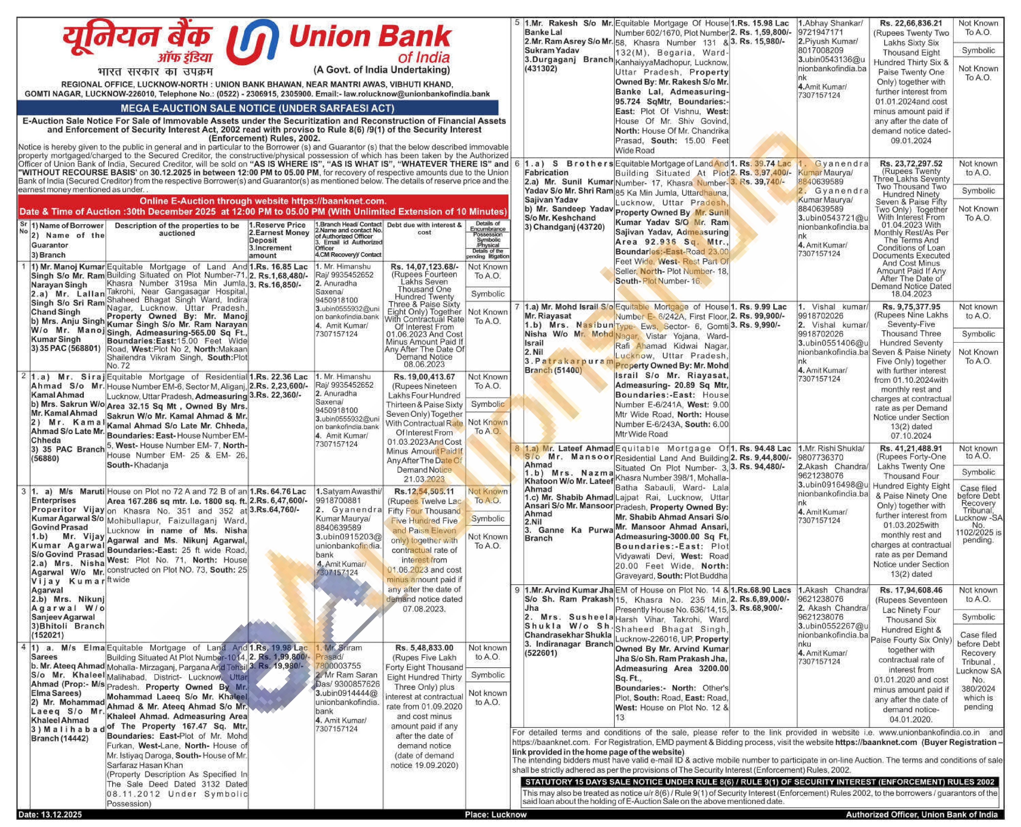 Contact No : 1. Mr. Himanshu Raj/ 9935452652 2. Anuradha Saxena/9450918100 3.ubin0555932@uni on bankofindia.bank 4. Amit Kumar/7307157124