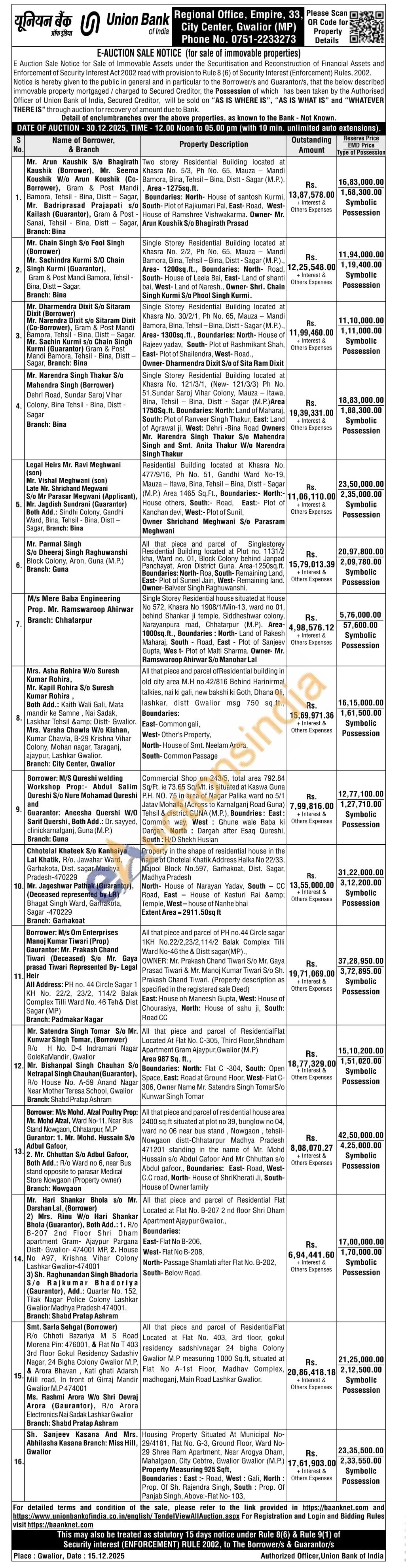 All that piece and parcel of Residential building in old city area M.H no.42/816 Behind Harinirmal talkies, nai ki gali, new bakshi ki Goth, Dhana Oli, lashkar, distt Gwalior msg 750 sq.ft., Boundaries: East-Common gali, West-Other's Property, North-House of Smt. Neelam Arora, South-Common Passage