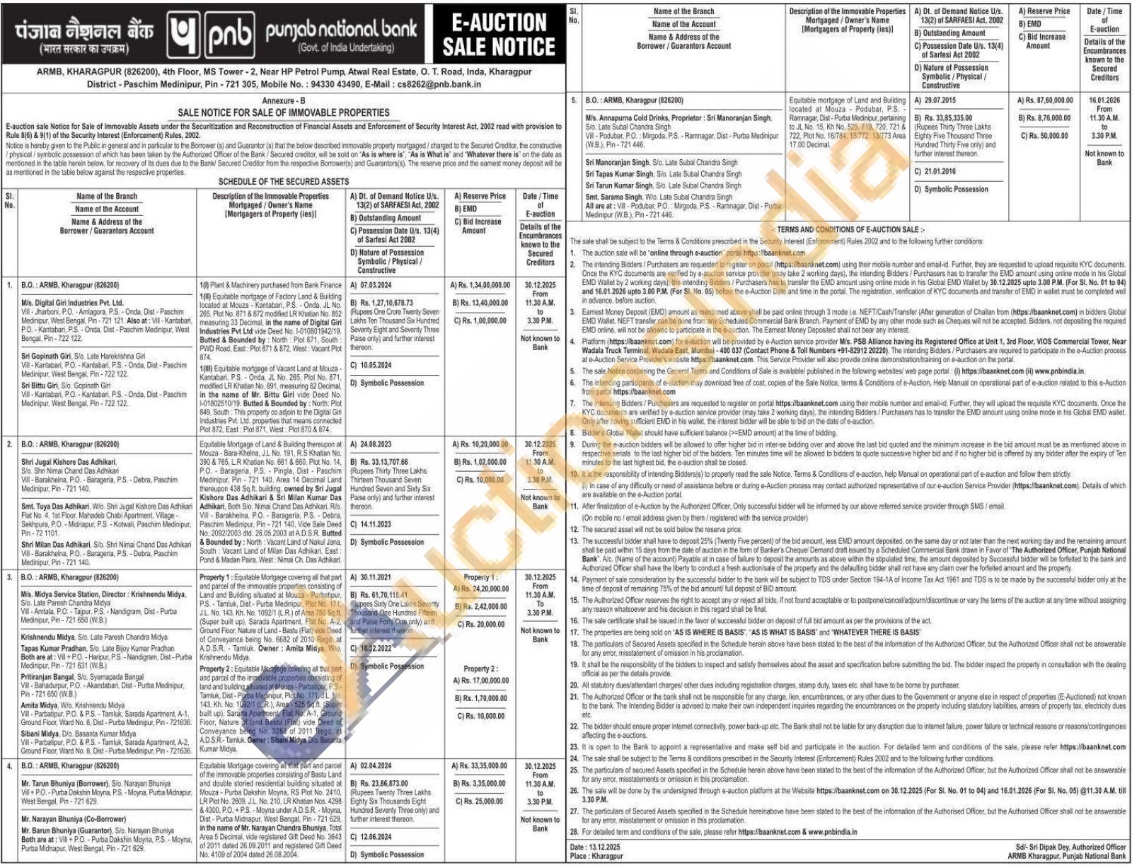 1(1) Plant & Machinery purchased from Bank Finance 1(II) Equitable mortgage of Factory Land & Building located at Mouza - Kantabari, P.S. Onda, JL No. 265, Plot No. 871 & 872 modified LR Khatian No. 852 measuring 33 Decimal, in the name of Digital Girl Industries Pvt Ltd vide Deed No. 1-010801942/19. Butted & Bounded by: North Plot 871, South PWD Road, East: Plot 871 & 872, West: Vacant Plot 874