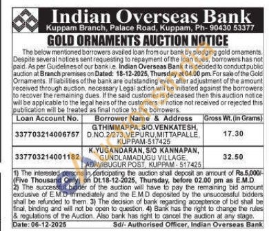 Indian Overseas Bank Gold Auctions Auction in Villupuram