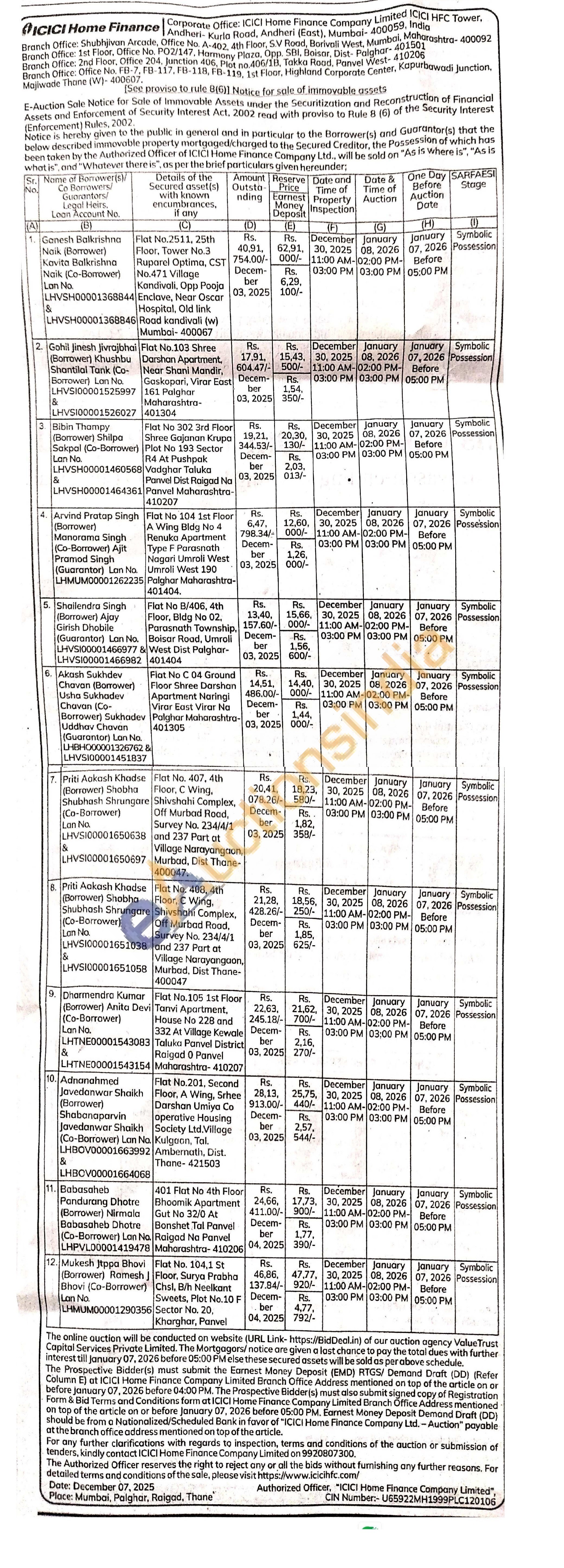 Flat No 104 1st Floor A Wing Bldg No 4 Renuka Apartment Type F Parasnath Nagari Umroli West Umroli West 190 Palghar Maharashtra-401404.