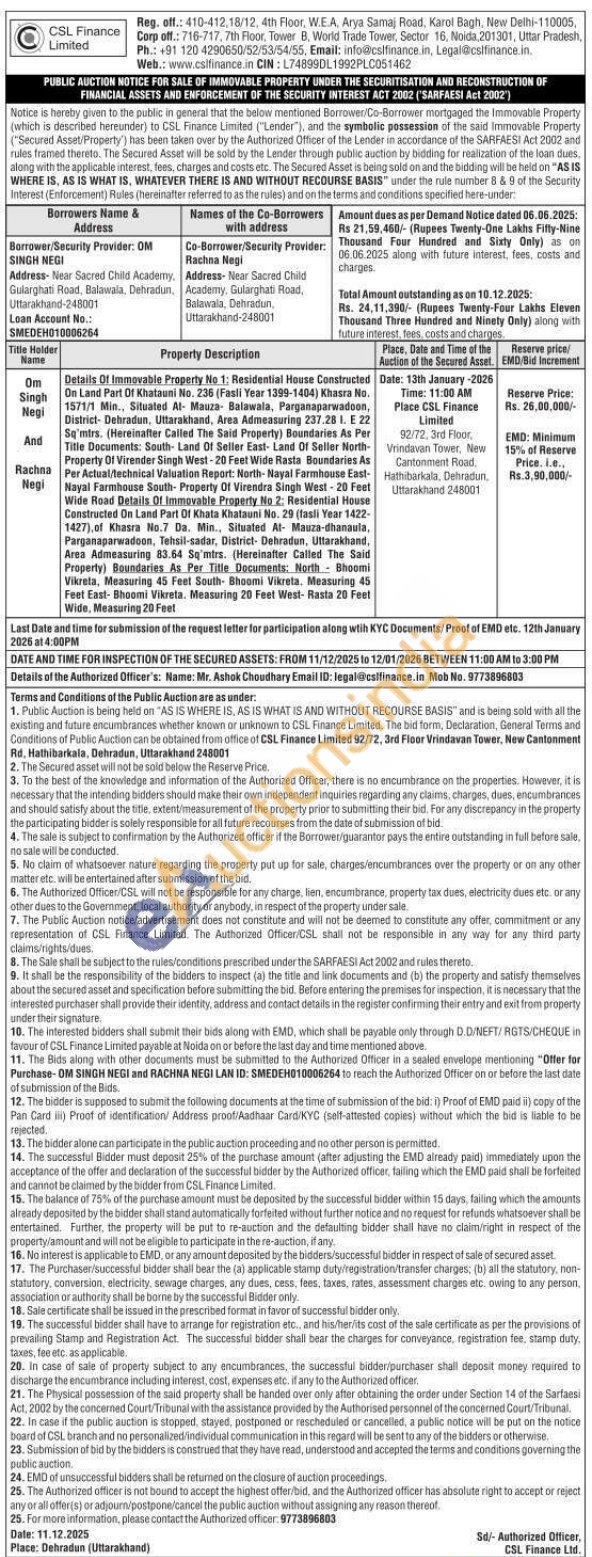 Details Of Immovable Property No 1. Residential House Constructed On Land Part Of Khatauni No. 236 (Fasli Year 1359-1404) Khas No. 1571/1 Min. Situated Al Masza Balewala, Parganasarwadoon, Disbici Dehradun, Uttarakhand, Ama Adinensuring 237.281.22 Sentrs. (Hereinafter Called The Said Property) Boundaries As Per Tille Documents: South-Land Of Seller East Land Of Seller North Praperty Of Virender Singh West-20 Feet Wide Rasta Boundaries As Per Actusi technical Valuation Report North-Kayal Farmhouse East Rayal Farmhouse South Property Of Virendra Singh West 20 Fest West 20 Fest Road Details of immovable Property Na 2. Residential Ho Constructed On Land Part Of Khata Khatauni No. 29 (fasi Year 1422-1427), of Khasra No.7 Da. Situaled Al- Mauza-Shatavia, Parganaparwadoon. Thail-sadar, Distrist Dehradus, Uttarakhand, Arta Admeasuring 83.54 Sqntrs. (Hereinafter Called The Said Property) Boundarisa Al Por Title Documents: North Bheoni Vikreta. Mesturing 40 fest South Bhoomi Vikreta, Measuring 45 Feet East Bhoomi Vikreta. Measuring 20 Feet West-Rasta 20 Fest Wide. Measuring 20 Feet