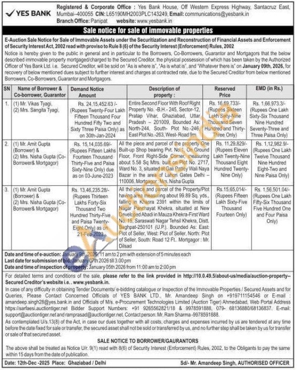 All the piece and parcel of the Property/Plot having area measuring about 99.89 Sq. yds, falling in Khasra 2391 within the limits of Nagar Panchayat Khekra, situated at New Developed Abadi in Mauza Khekra-First Ward No. 15, Saraswati Nagar Tehsil Khekra, Distt. Baghpat-250101 (UP). Bounded As. East: Plot of Seller, West: Plot of Seller, North: Plot of Seller, South Road 12 Ft.. Mortgagor: Mr. Dilsad