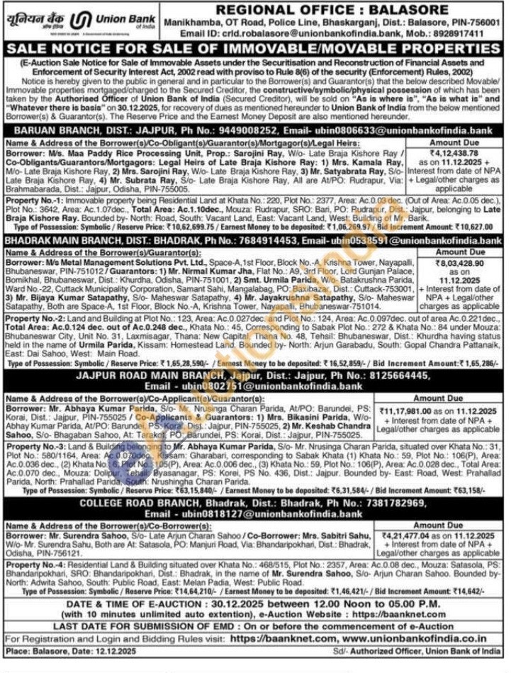Property No.-3: Land & Building belonging to Mr. Abhaya Kumar Parida, S/o- Mr. Nrusinga Charan Parida, situated over Khata No.: 31, Plot No.: 580/1164, Area: Ac.0.070dec., Kissam: Gharabari, corresponding to Sabak Khata (1) Khata No.: 59, Plot No.: 106(P), Area: Ac.0.036 dec., (2) Khata No.: 6, Plot No.: 105(P), Area: Ac.0.006 dec., (3) Khata No.: 59, Plot No.: 106(P), Area: Ac.0.028 dec., Total Area: Ac.0.070 dec., Mouza: Dolipur, Tehsil: Byasanagar, PS: Korei, PS No. 436, Dist.: Jajpur. Bounded by- East: Road, West: Prahallad Parida, North: Prahallad Parida, South: Nrushingha Charan Parida.