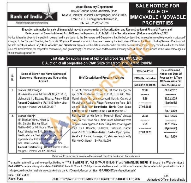 Flat No.904 South - By Flat No,906 Flat No:-905 on 9th floor in "Mountain Raga" situated on S.No.263, Hissa No. 4, Next to shri Kal Bhairavnath Temple, main approach from Katraj-Hadapsar bypass road, Uruli Devachi, Tal-Haveli, Dist-Pune. Carpet area:- 55.20 SQM Boundaries: East Open Space West-Entrance, Passage, lift, staircase North - By