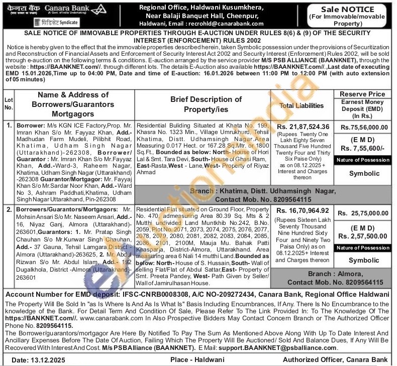 Residential Flat situated on Ground Floor, Property No. 470, admeasuring Area 80.39 Sq. Mts & 2 - Mutthi undivided Land Muntkhib No.242, B.No. selling Flat/Flat of Abdul Sattar, East- Property of 2059, Plot No. 2071, 2073, 2074, 2075, 2076, 2077, 2078, 2079, 2080, 2081, 2082, 2083, 2084, 2085, 2086, 2101, 2100M, Mauja Mu. Bahak Patti Khasparja, District-Almora, Uttarakhand. Area measuring area 6 Nali 14 mutthi Land. Bounded as below: North-House of S. Hussain, South-Wall of Smt. Preeta Pandey, West- Path Given by Seller/Wall of Jamirulhasan House.
