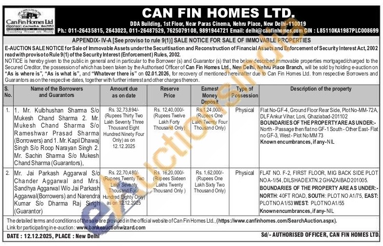 FLAT NO. F-2, FIRST FLOOR, MIG BACK SIDE PLOT NOA-1/54, DILSHADEXTN.2 GHAZAIBAD 201005. BOUNDARIES OF THE PROPERTY AREAS UNDER:-NORTH: 40FT ROAD, SOUTH: PLOT NO A1/75, EAST: PLOTNO A 1/53 WEST: PLOTNO A1/55 Knownencumbrances, if any- NIL