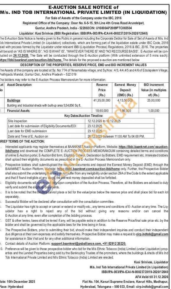 Financial Assets The Asse ts of the company are located at Sy. No: 774 of Yenamadala village, and Sy.Nos: 4/3, 4/4, 4/5 and 4/6 of Edulapalem Village, Prathipadu Mandal, Guntur Dist., Andhra Pradesh-522019