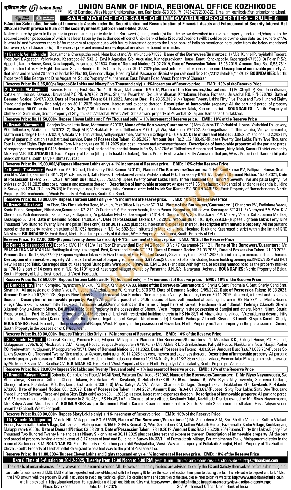Description of immovable property: All the part and parcel of property admeasuring 0.0445 Hectares (11 cents) of land and Residential House in Re.Sy. No178/6 of Thillenkery Amsom and Desam, Iritty Taluk, Kannur District owned by Mr.Shaji M.P. BOUNDARIES: East: Property of Damu (ithil petta baakki sthalam), North: Property of Lakshmi Kutty Amma muthal per, West: Property of Damu (ithil petta baakki sthalam), South: Uliyil-Kuttimaavu road
