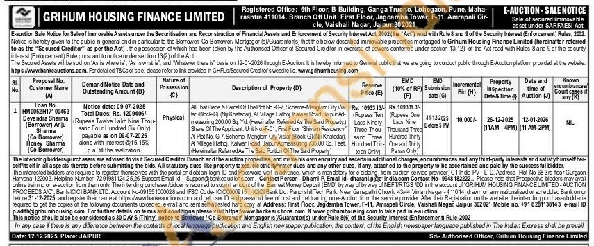 All That Piece & Parcel Of The Plot No.-G-7. Scheme-Mangiam City Vis Br Block-haedar, Vilage Hatho Kalwar Road, Jaipur Ad-measuring 200.00 Sq. Yd. (Hereinafter Referred As The Said Property) Share Of The Applicant: Unit No.-F-01, First Floor "Shivam Residency At Plot No.-G-7. Scheme-Manglam Olty Vistar (Block-G) (Nji Khatedari At Village Hathoj, Kalwar Road, Jaipur Admeasuring 735.00 Sq. Feet. Hereinafter Referred As The Said Portion Of The Said Property)