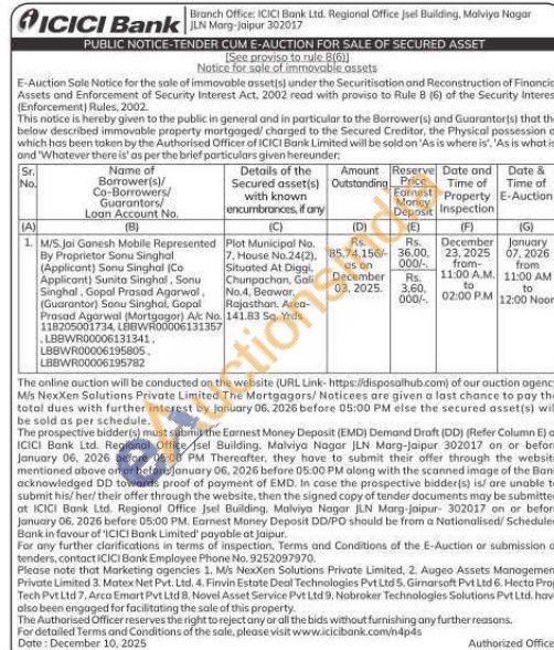 Plot Municipal No. 7. House No.24(2), Situated At Diggi Chunpachan, Gali No.4. Beawar, Rajasthan, Area-141.83 Sq. Yrds