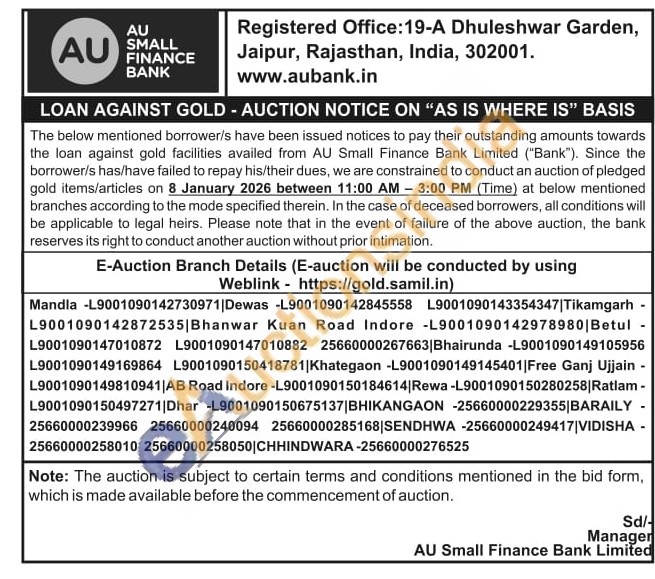 AU Small Finance Bank Gold Auctions Auction in Jaipur