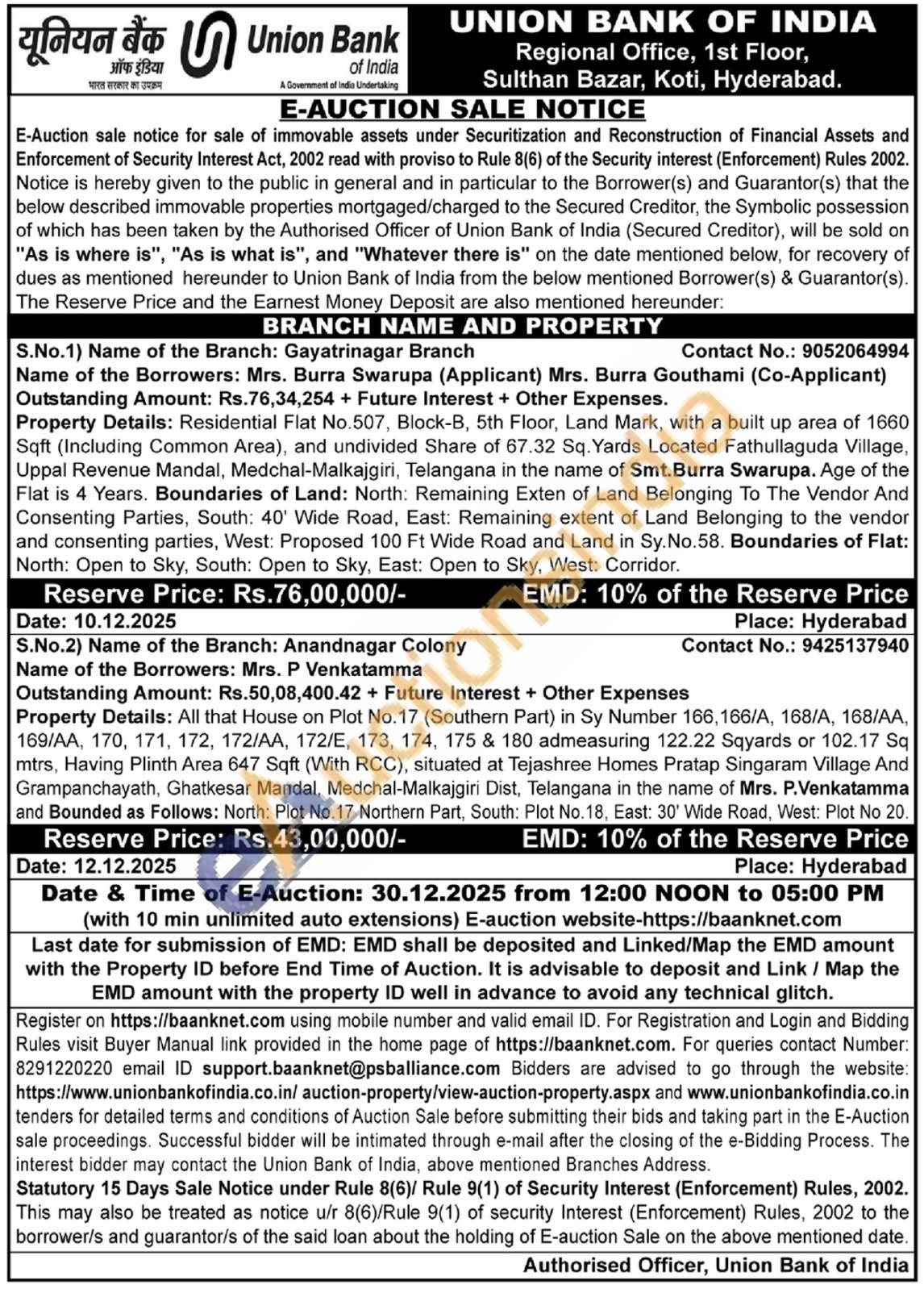 Property Details: Residential Flat No.507, Block-B, 5th Floor, Land Mark, with a built up area of 1660 Sqft (Including Common Area), and undivided Share of 67.32 Sq. Yards Located Fathullaguda Village, Uppal Revenue Mandal, Medchal-Malkajgiri, Telangana in the name of Smt. Burra Swarupa. Age of the Flat is 4 Years. Boundaries of Land: North: Remaining Exten of Land Belonging To The Vendor And Consenting Parties, South: 40' Wide Road, East: Remaining extent of Land Belonging to the vendor and consenting parties, West: Proposed 100 Ft Wide Road and Land in Sy. No.58. Boundaries of Flat: North: Open to Sky, South: Open to Sky, East: Open to Sky, West: Corridor