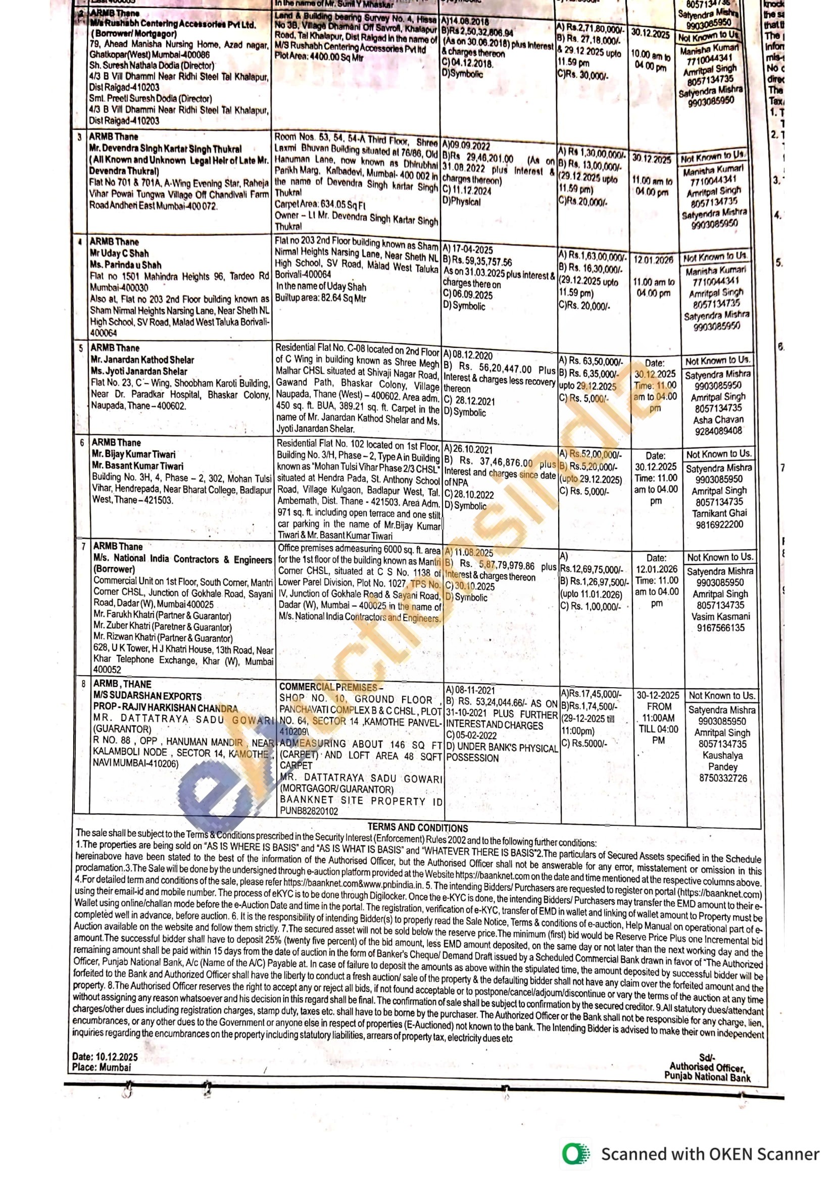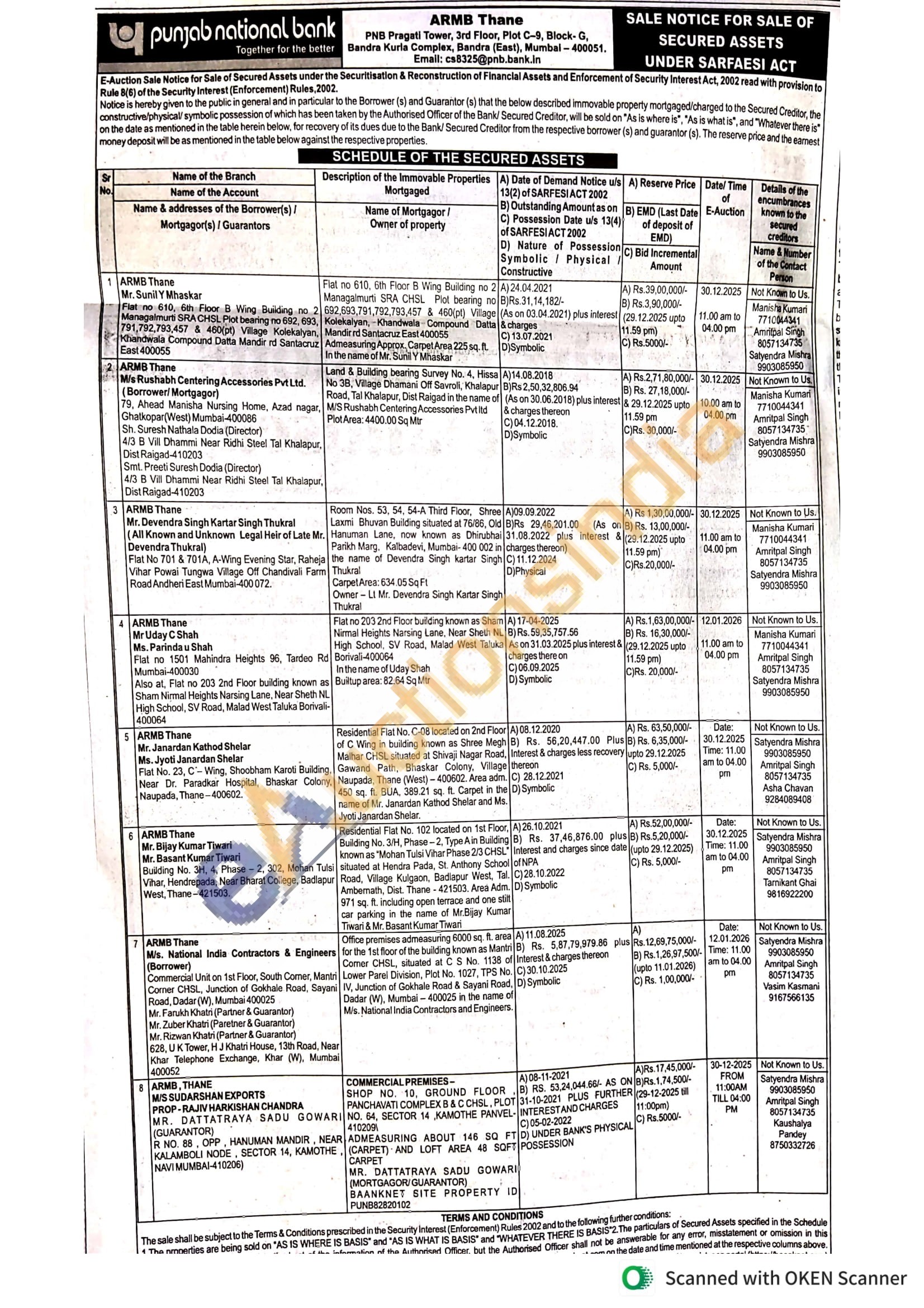 Office premises admeasuring 6000 sq. ft. area for the 1st floor of the building known as Mantri Comer CHSL, situated at C S No. 1138 of Lower Parel Division, Plot No. 1027, TPS No. IV, Junction of Gokhale Road & Sayani Road, Dadar (W), Mumbai-400025 in the name of M/s. National India Contractors and Engineers