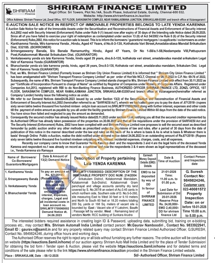 Authorized Officer, G.SURESH, Contact No : 9849824246