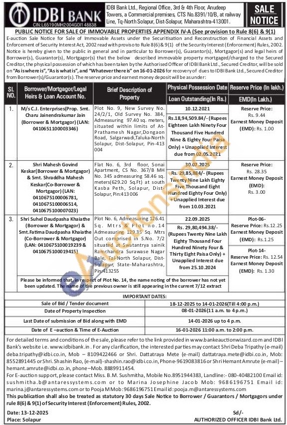 • Auction Start Date :  16-01-2026 11:00 AM