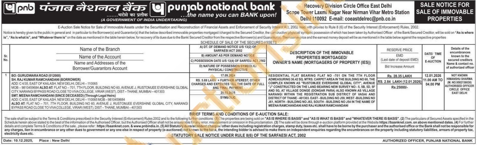 HIMANSHU SHARMA (Mobile No : 9582136030) AUTHORISED OFFICER CIRCLE OFFICE