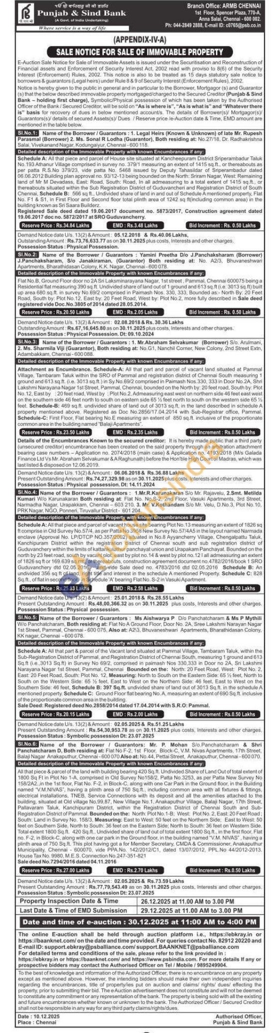 4) All that piece and parcel of vacant house site bearing Plot No. 13 measuring an extent of 1826 sq ft comprise in Old Survey No.57/4, as per Patta No 3958 New Survey No.57/4A5 in the layout named Narmada enclave (Approval No. LP/DTCP NO.357/2002) situated in No.8 Ayyancherry Village, Chengalpattu Taluk, Kanchipuram District within the registration district of Chennai south and sub registration district of Guduvanchery within the limits of kattankulathur panchayat union and Urapakam Panchayat. Bounded on the north by 23 feet road, south by vacant plot, east by plot no. 14 & west by plot no. 12 1 all admeasuring an extent of 1826 sq ft or 169.639 sq.mt, or thereabouts, construction agreement document no.4782/2016/book 1 SRO Guduvanchery did 02.05.2016 and vide Sale deed no. 4783/2016, did 02.05.2016 Schedule B: An undivided 356 sq ft of land, right title and interest in the schedule A mentioned Property. Schedule C: 828 Sq.ft., of flat in second floor, in Schedule 'A' bearing Flat No. S-2 in Vasuki Apartment