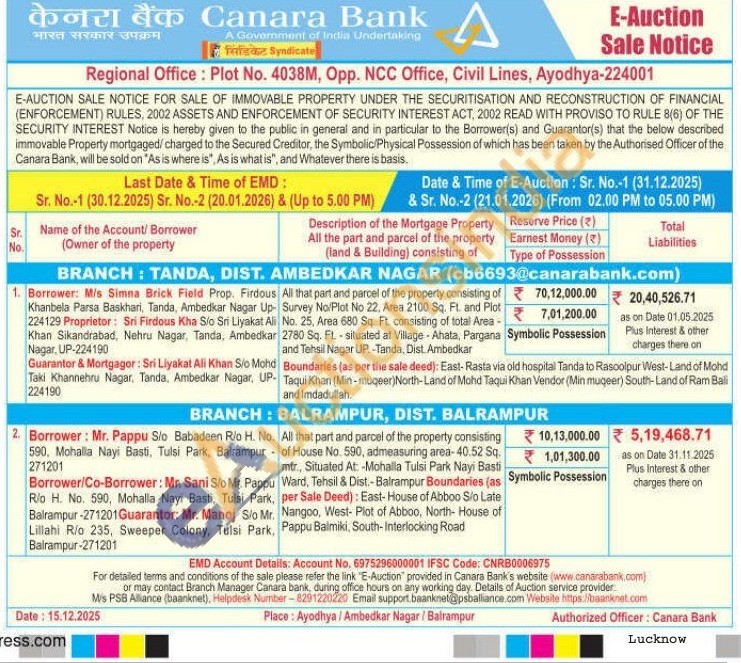 All that part and parcel of the property consisting of House No. 590, admeasuring area-40.52 Sq. mtr., Situated At: -Mohalla Tulsi Park Nayi Basti Ward, Tehsil & Dist.- Balrampur Boundaries (as per Sale Deed): East- House of Abboo Sio Late Nangoo, West-Plot of Abboo, North- House of Pappu Balmiki, South-Interlocking Road