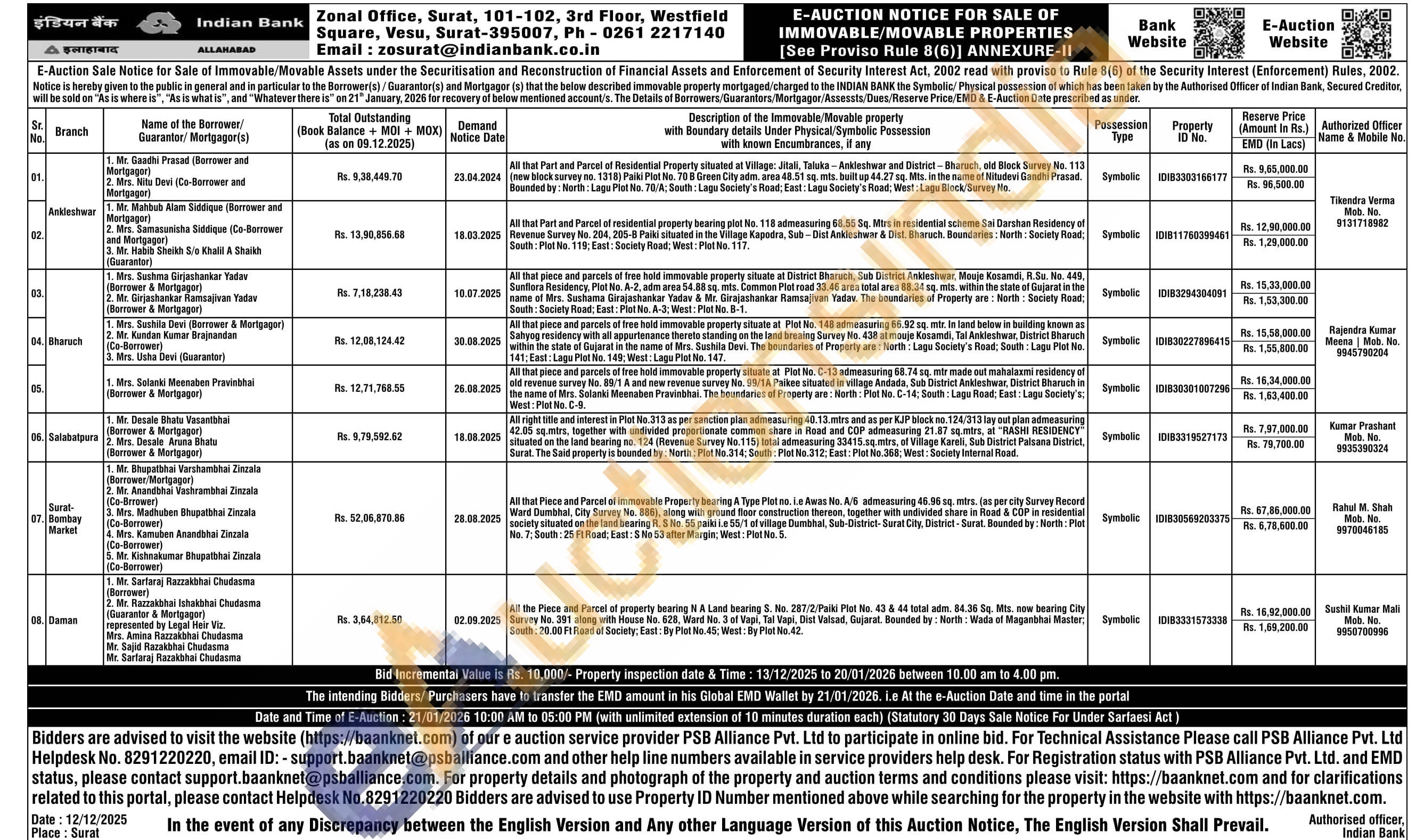 All that piece and parcels of free hold immovable property situate at District Bharuch, Sub District Ankleshwar, Mouje Kosamdi, R.Su. No. 449, Sunflora Residency, Plot No. A-2, adm area 54.88 sq. mts. Common Plot road 33.46 area total area 88.34 sq. mts. within the state of Gujarat in the name of Mrs. Sushama Girajashankar Yadav & Mr. Girajashankar Ramsajivan Yadav. The boundaries of Property are: North: Society Road: South: Society Road: East: Plot No. A-3: West: Plot No. 8-1