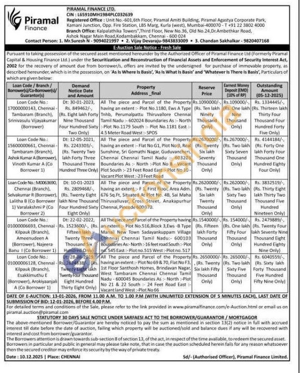 All The piece and Parcel of the Property having an extent:- Plot No 69 & 70, Flat No F3. 1st Floor Santhosh Homes, Brindavan Nagar, West Tambaram Chennai Chennai Tamil Nadu 600045 Boundaries As: North Plat No 21 & 22 South 24 Feet Road East Vacant land West:-Plot No 66