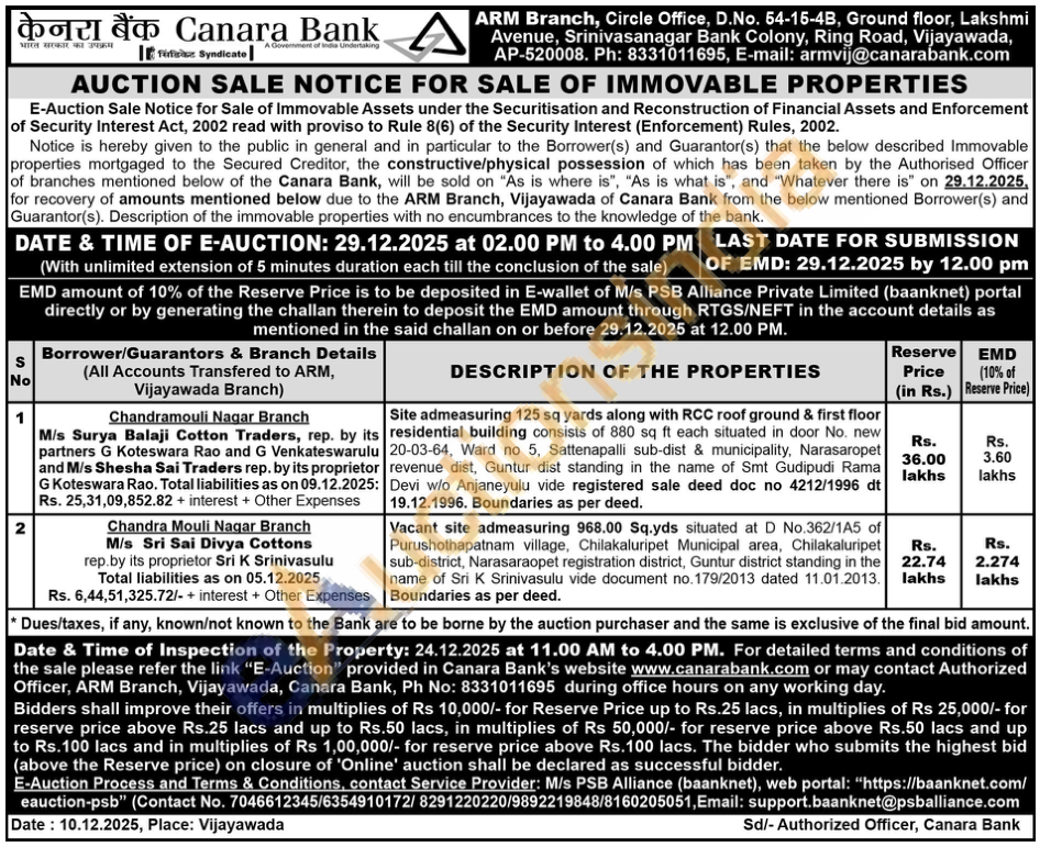 Site admeasuring 125 sq yards along with RCC roof ground & first floor residential building consists of 880 sq ft each situated in door No. new 20-03-64, Ward no 5, Sattenapalli sub-dist & municipality, Narasaropet revenue dist, Guntur dist standing in the name of Smt Gudipudi Rama Devi w/o Anjaneyulu vide registered sale deed doc no 4212/1996 dt 19.12.1996. Boundaries as per deed.