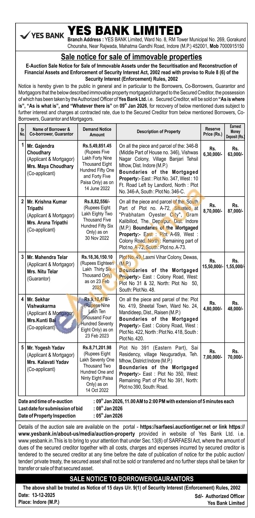 Plot No. 49, Laxmi Vihar Colony, Dewas, (M.P.) Boundaries of the Mortgaged Property:- East: Colony Road, West: Plot No 31 & 32, North: Plot No 50, South: Plot No. 48.